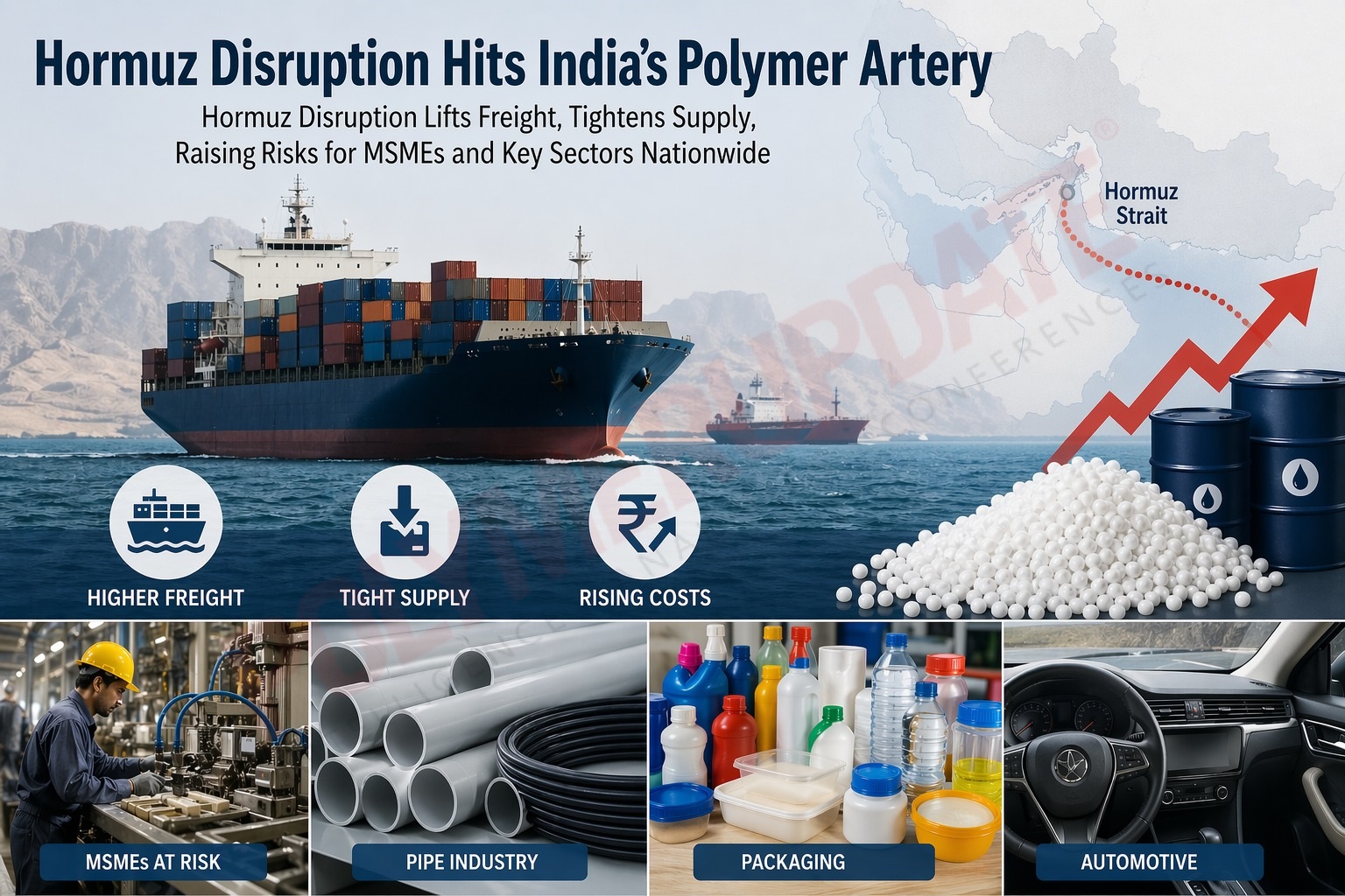 The escalating disruptions in the Strait of Hormuz have pushed India’s polymer supply outlook into a phase of prolonged uncertainty, as repeated attacks on merchant vessels and heightened geopolitical tensions continue to unsettle trade flows. With a significant share of India’s polymer and petrochemical imports routed through this narrow corridor, any sustained instability directly threatens supply continuity. The recent targeting of cargo ships, including those carrying polymer consignments destined for India, has amplified concerns among processors and traders over shipment delays, contract uncertainties, and rising transit risks.