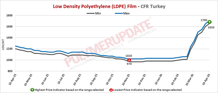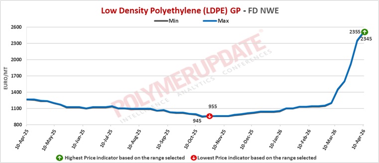A European industry source told a Polymerupdate team member, “European LLDPE prices have risen, supported by higher feedstock and energy costs, alongside firm contract settlements for April. These factors have increased production expenses, allowing producers to maintain elevated offers. Supply has remained tight due to limited imports, trade disruptions, and the impact of shutdowns and force majeure, which have restricted spot availability. Buying interest has been steady, helping to sustain the upward trend. While US–Iran ceasefire talks have provided some short-term stability, supply chains from West Asia continue to face disruptions, preventing any meaningful improvement in availability.”