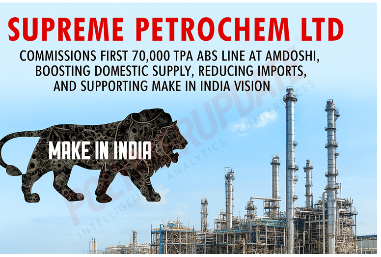 Mumbai-headquartered Supreme Petrochem Ltd (SPL), India’s largest producer and exporter of polystyrene, has commissioned its first Acrylonitrile Butadiene Styrene (ABS) production line at its Amdoshi facility in Nagothane, Maharashtra. The commencement of ABS production marks a significant milestone for the company, as domestic supply from SPL will proportionately reduce India’s import dependence and strongly support Prime Minister Narendra Modi’s ‘Make in India’ vision.