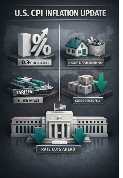 The Consumer Price Index (CPI)-based retail inflation in the United States rose by 0.3 percent, driven by higher shelter costs, including rents, the Labour Department’s Bureau of Labor Statistics said on Tuesday. The increase from the previous month was largely attributed to reciprocal and punitive tariffs imposed by U.S. President Donald Trump on much of the world, which kept some upward pressure on consumer prices. Meanwhile, December inflation for consumer staples such as food and electricity remained elevated.