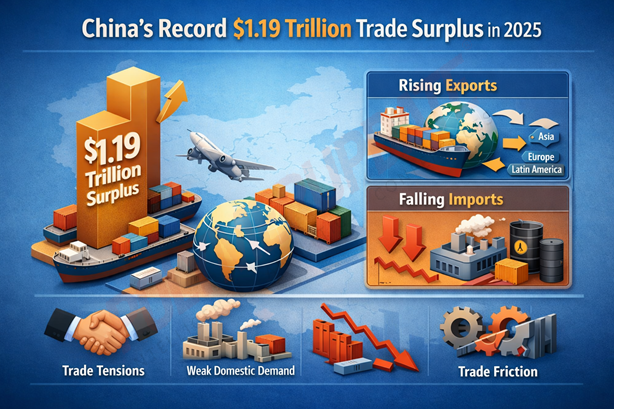 China’s exports ended last year with a growth spurt, pushing its trade surplus to a record US$1.19 trillion in 2025. This extended a boom that has seen Chinese factories bypass Donald Trump’s tariffs by making deeper inroads into markets beyond the United States. According to China’s National Bureau of Statistics (NBS), the trade surplus was driven by resilient exports to diverse markets—including the European Union and the Global South—as shipments to the United States declined, alongside slower import growth reflecting softer domestic demand.