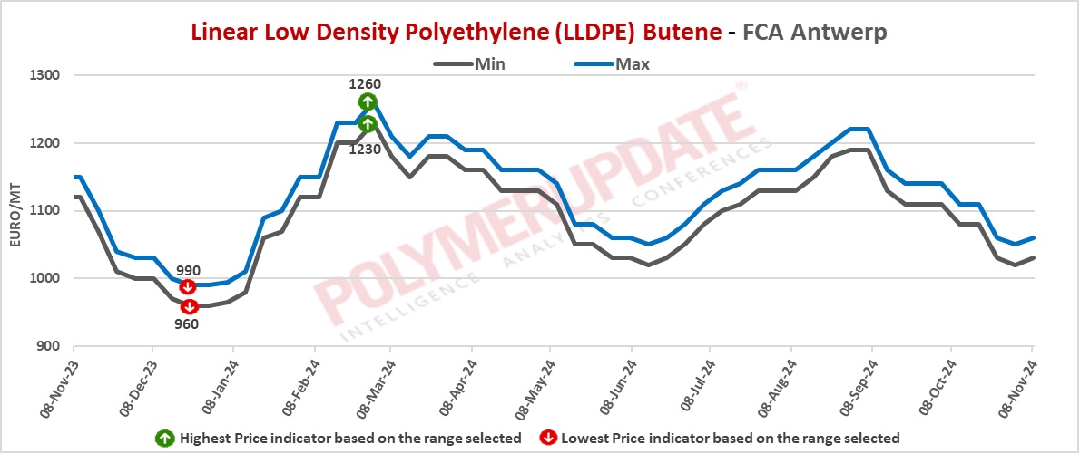 An industry source in Europe informed a Polymerupdate team member, "Prices rose following the higher ethylene feedstock contract settlement for November 2024, supported by the sharp rise in naphtha costs in October, coupled with stronger upstream crude oil values."