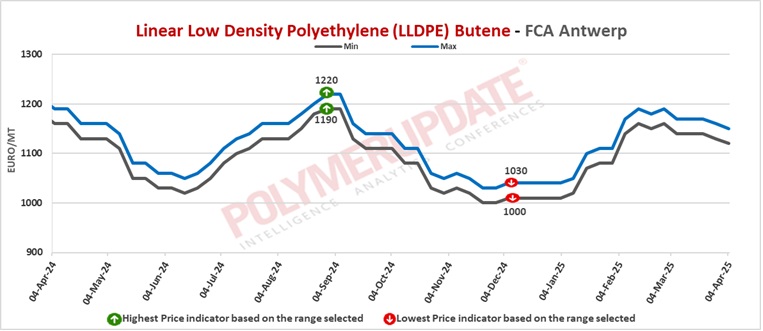 In the spot markets, LLDPE prices were assessed at the Euro 1135-1145/mt FD Northwest Europe levels, down Euro (-10/mt) from the previous week.