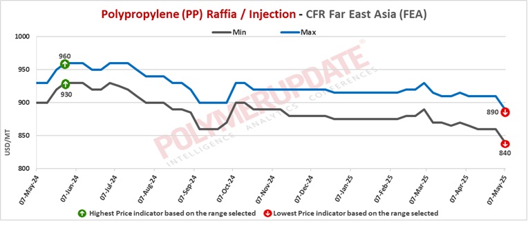 In India, Middle Eastern producers have offered their PP raffia and PP injection at the USD 920-940/mt levels, for shipment in May 2025.