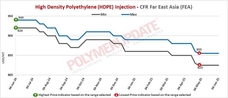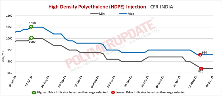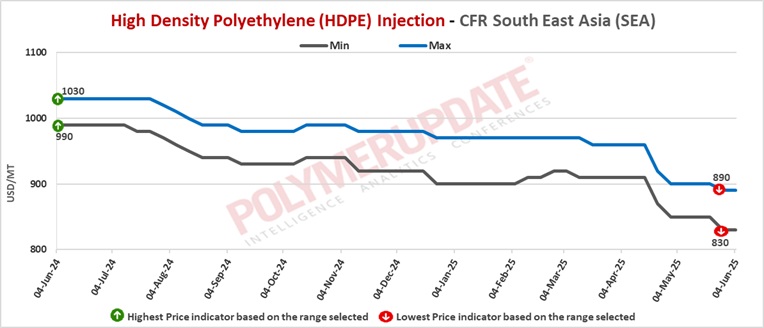 In Bangladesh, a Middle Eastern producer has offered its HDPE film grade at the USD 980/mt CFR levels, for shipment in June 2025. A Saudi Arabian producer has offered its HDPE film grade at the USD 1000/mt CFR levels, for shipment in June 2025.
