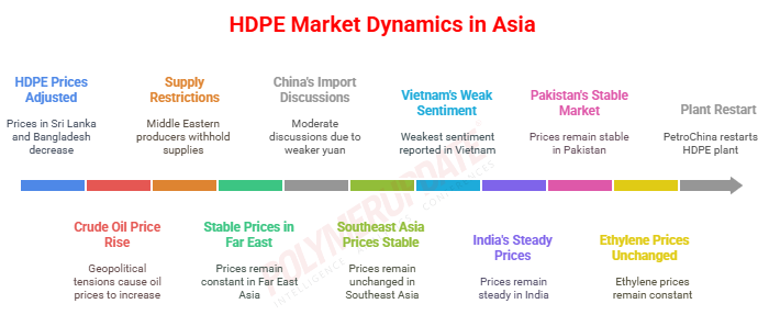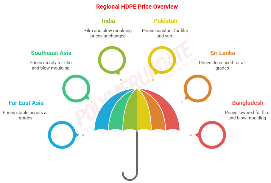 This week, HDPE prices down adjusted in Sri Lanka and Bangladesh while quoting flat in other parts of the Asian region.