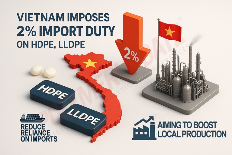 Vietnam has imposed a 2 percent import duty on high-density polyethylene (HDPE) and linear low-density polyethylene (LLDPE) to protect the interests of its sole domestic producer, Long Son Petrochemical (LSP). Effective July 8, the new tariff is expected to curb the influx of low-cost imports, particularly from Southeast Asian (SEA) markets and East Asia, including China, and support local suppliers in meeting the country’s growing demand.