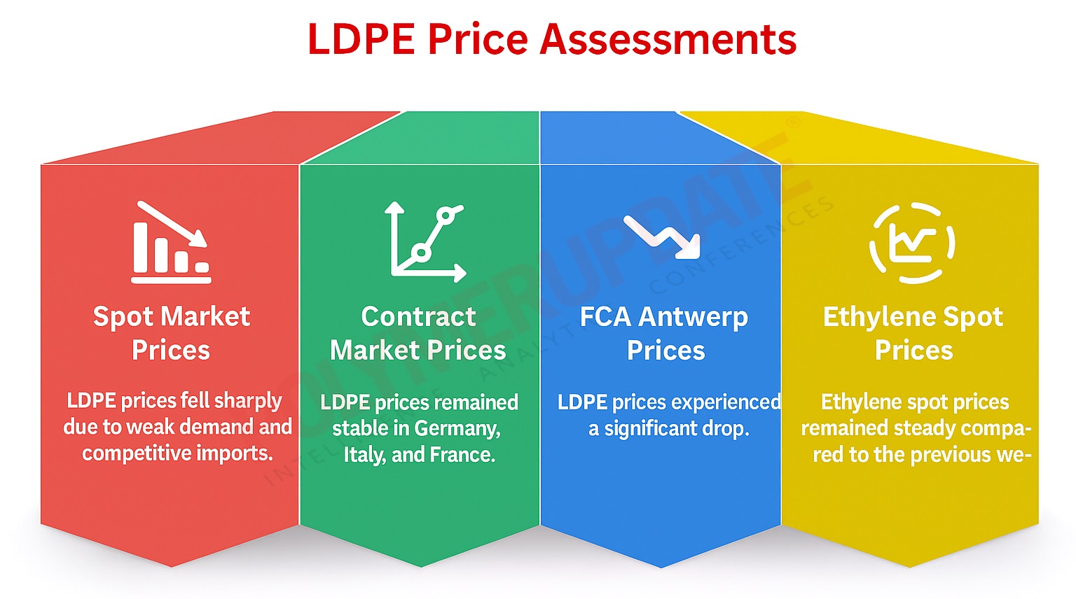 In the contract markets, General Purpose LDPE grade prices were assessed at the Euro 1910-1915/mt FD NWE Germany and FD NWE Italy levels, both stable from last week. LDPE General Purpose grade prices were assessed at the Euro 1910-1915/mt FD NWE France levels, steady week on week. Meanwhile, LDPE grade prices were assessed at the GBP 1660-1665/mt FD NWE UK levels, a hike of GBP (+15/mt) from the previous week.