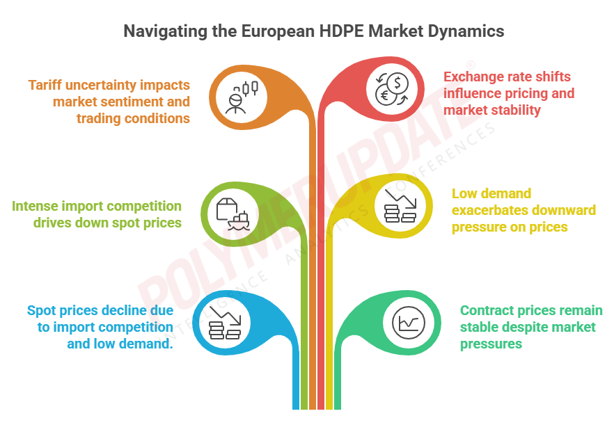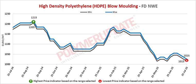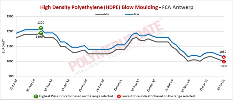An industry source in Europe informed a Polymerupdate team member, "Intense import competition persisted, exerting pressure on the European high density polyethylene (HDPE) spot market, resulting in prices remaining within a narrow range. Import offers were more appealing than domestic levels, especially in the context of low demand. Trading activity further declined with the arrival of the summer holiday season, restricting overall transactions and adding to the downward pressure on spot prices. Although most PE grades saw weaker pricing, the HDPE injection market varied somewhat, showing an increase in spot prices because of the limited availability of offers. Nonetheless, the basics of supply and demand stayed mostly the same, while market sentiment was affected by uncertainty regarding upcoming tariff decisions. Numerous market players indicated challenges in assessing trading conditions because of unclear tariff ramifications."