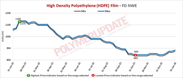 A European industry source told a Polymerupdate team member, “HDPE spot prices in Europe continued to rise as supply remained tight and material availability was limited as the month of January drew to a close. Reduced volumes across several grades, caused by production disruptions and maintenance activity at key plants, supported the price gains. Producers maintained stable operating rates, focusing on fulfilling long-term contract commitments rather than supplying the spot market.”