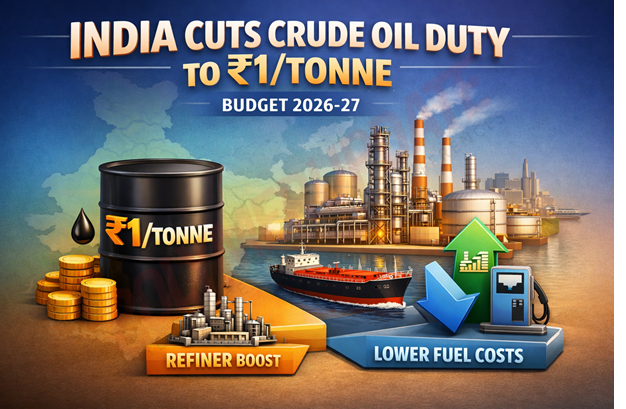 India has cut the basic customs duty on crude petroleum to Re 1 per tonne in the Union Budget 2026–27, from the existing 5 percent ad valorem rate, to provide major relief to domestic refiners and position New Delhi as a global refining hub. The announcement was made by Union Finance Minister Nirmala Sitharaman while presenting the Union Budget 2026–27 in Parliament (Lok Sabha) on Sunday. The import duty cut will help refineries to pass on the downstream energy products such as diesel, petrol, Aviation Turbine Fuel (ATF), kerosene, and others cheaper. Additionally, the derivatives such as polymers are also likely to become cheaper now.