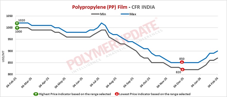 A domestic industry source informed a Polymerupdate team member, “Reliance Industries Limited (RIL) raised PP grade prices by Rs.2.50/kg basic, with effect from February 1, 2026.”