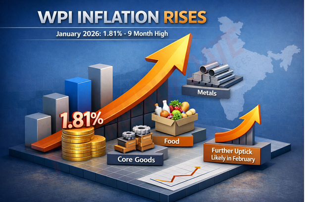 India’s bulk commodities inflation, measured by the Wholesale Price Index (WPI), more than doubled to 1.81 percent in January, marking its highest level in nine months, driven by a favourable base effect and higher prices of non-food articles, including base metals. A substantial increase in precious metal prices also supported overall bulk inflation. Headline inflation rose from (-)1 percent in October to (-)0.13 percent in November, then turned positive at 0.8 percent in December and 1.8 percent in January.