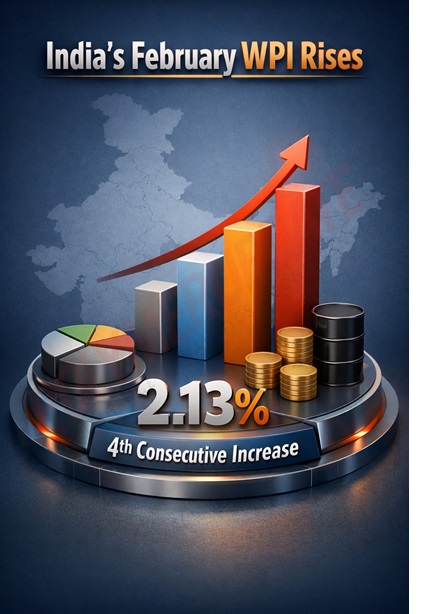 India’s bulk inflation, measured by the Wholesale Price Index (WPI), rose for the fourth consecutive month to 2.13 percent in February following a substantial increase in the prices of non-food articles, even though vegetable prices eased, data compiled by the Ministry of Commerce and Industry showed. The February WPI print marked a notable increase from 1.81 percent recorded in January 2026, but was lower than the 2.45 percent registered in February 2025.