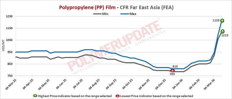 An industry source in Asia, on condition of anonymity, informed a Polymerupdate team member, "Polypropylene market sentiment in Asia strengthened as escalating tensions between the US and Iran disrupted feedstock flows from the Middle East, particularly after shipping activity through the Strait of Hormuz slowed significantly. Several producers reduced spot and contract allocations, while others informed customers that orders may not be fully fulfilled due to the limited availability of key feedstocks such as naphtha and LPG. Tightening supply conditions have supported prices, although downstream converters remain cautious as rising raw material costs continue to pressure profit margins. Buyers have shown resistance to higher offers, keeping trading activity relatively measured. However, the supply-demand balance is gradually tightening, providing underlying support to the market, with several buyers attempting to secure cargoes ahead of the upcoming Eid al-Fitr holidays."