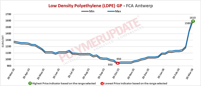 This week, LDPE prices surged in Europe amid extended delivery timelines and higher energy costs driven by geopolitical tensions in West Asia.