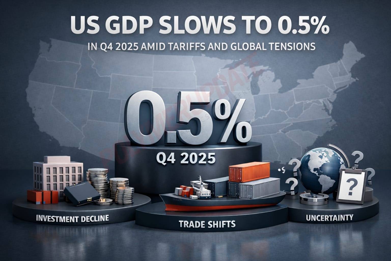 The United States economy slowed more than expected, registering real gross domestic product (GDP) growth of 0.5 percent in the October–December 2025 quarter, amid months of tariff-related uncertainty under President Donald Trump. The slowdown was also influenced by the ongoing Russia–Ukraine war, now in its fourth year, which has kept the world divided over the conflict between the two neighbours. Sanctions and reduced energy supplies from Moscow, particularly to the European Union, have hindered the region's trade activity.