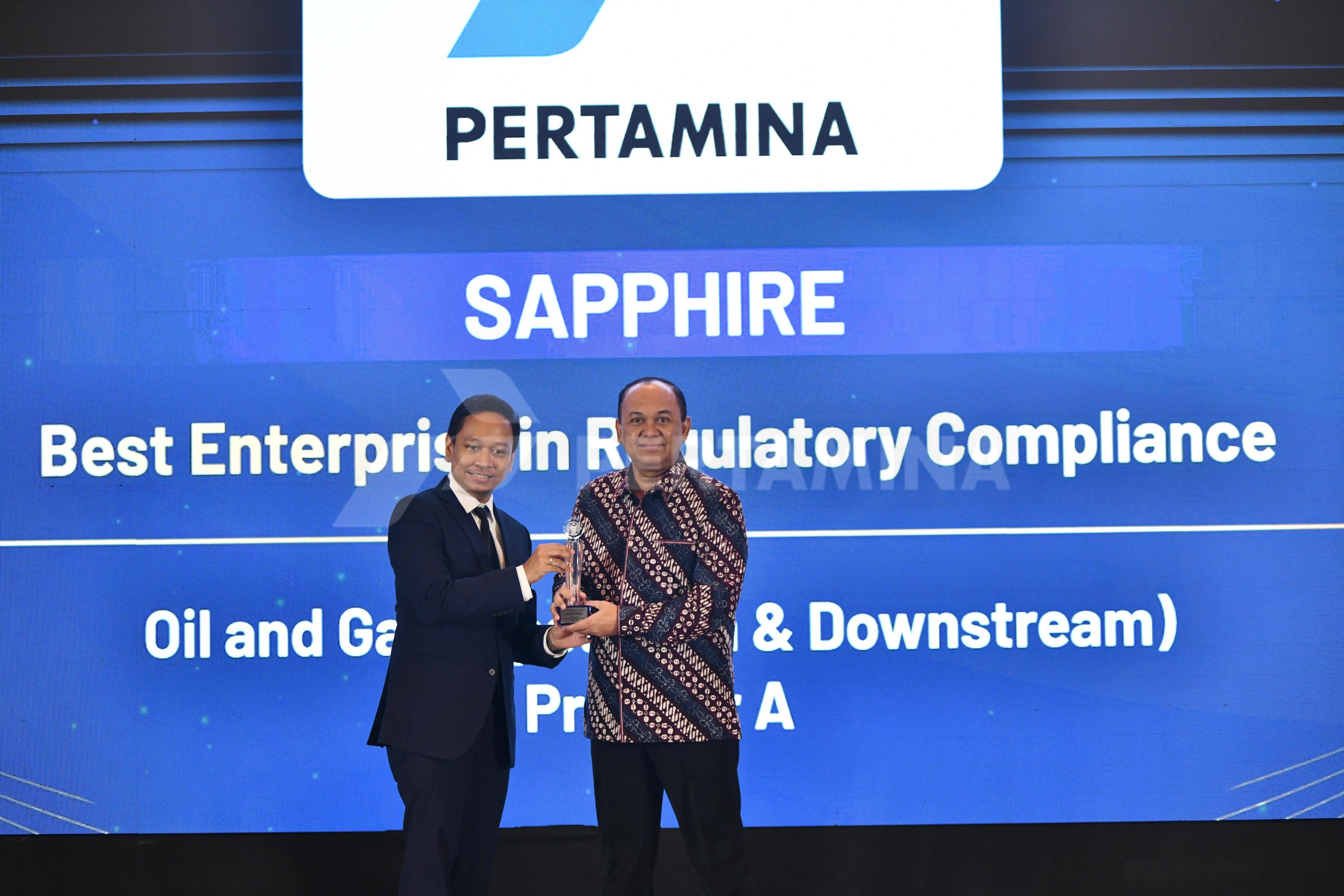 PT Pertamina (Persero) has received the Sapphire Best Enterprise in Regulatory Compliance Oil and Gas Company award at the 2025 Indonesia Regulatory Compliance Awards (IRCA). The event was organized by Hukumonline on Friday, May 9, 2025, at the JS Luwansa Hotel, Kuningan, Jakarta.