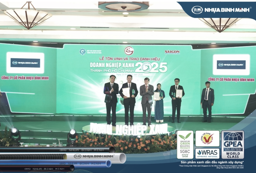 Binh Minh Plastics (BMP), a leading manufacturer and distributor of high‑quality plastic pipes and fittings in Vietnam, has recently been honored as one of Ho Chi Minh City’s Green Businesses 2025, recognizing enterprises with outstanding achievements in sustainable development and strong compliance with environmental standards. The program is organized by Sài Gòn Giải Phóng newspaper and the Ho Chi Minh City Business Association, with the support of the Ho Chi Minh City People’s Committee, and selects leading companies that have successfully advanced their green transformation.