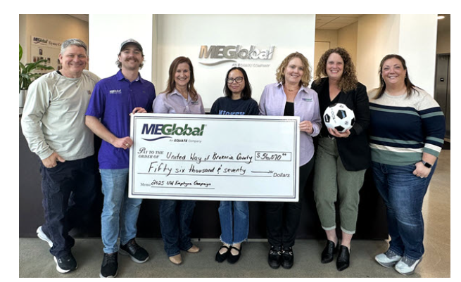 MEGlobal Americas Inc. reached a new all-time high in generosity, with a total of $89,289.88 raised in its 2025 United Way Employee Charities Campaign. This eclipsed the previous record of $81,000 set in 2024. The campaign also exceeded its goal of 90% participation, with a 92% participation rate.